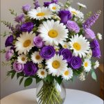 🌼 Reina 304-CA – Bouquet Real Elegante – Composición Floral de Margaritas y Rosas Lavanda 💐✨