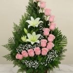 Rosas rosadas que honran la admiración, lirios blancos que celebran la fortaleza y un diseño elegante que simboliza equilibrio, gracia y liderazgo 🌿✨