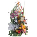 ESPLENDOR TROPICAL es una obra floral llena de carácter, color y vida. Un diseño vertical y majestuoso que combina la fuerza de lo exótico con la delicadeza de lo romántico.